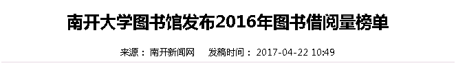 据了解,南开大学图书馆选择在“世界读书日”期间发布借阅排行榜,旨在激发学生阅读书籍的热情,为学生借阅提供参考,鼓励更多学生使用图书馆的服务,让读书成为南开学生的良好习惯和终身爱好。