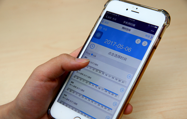 “微信预约的方式越来越受学生的青睐。单人自习间几乎每天都接近满员、小研讨室和大研讨室的使用量也在逐渐增加。”图书馆读者服务二部主任吴春说。