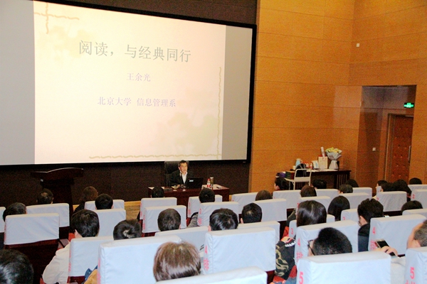 在讲座中,王余光教授主要从“为何阅读传统经典”和“经典的选择”两个方面展开了演讲。“为何阅读传统经典”,针对这一近百年的争论,王余光教授说到,随着科举与清王朝的结束,传统典籍与读书人越来越疏远,但这不等于说,传统典籍失去了生命力。他旁征博引,以风趣幽默的语言,阐述了阅读传统经典的意义。他认为,阅读经典是文化传承的需要,可以传承中华传统文化,树立中华民族的文化自信;同时也能够为我们的价值选择指引方向,“涵养民性,启发民智”,经世救国;其次是写作与气质的培养,他讲到自己的老师——国学大师张舜徽先生有日日早起诵读的好习惯,说明读书对于塑造个人气质有着极大的作用;再次是对传统的尊重;最后是提升教养,阅读传统经典可以远离消费主义和平庸趣味的污染,使名著的知识与思想能够成为个人教养的一部分。