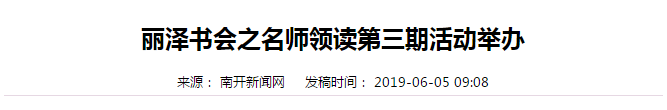 据悉,该活动是南开大学图书馆和南开大学教师发展中心推出名师领读系列活动。旨在引领校园阅读风尚,鼓励大家多读书、读好书、读懂书。目前活动为沙龙形式,每次活动限额三十人。