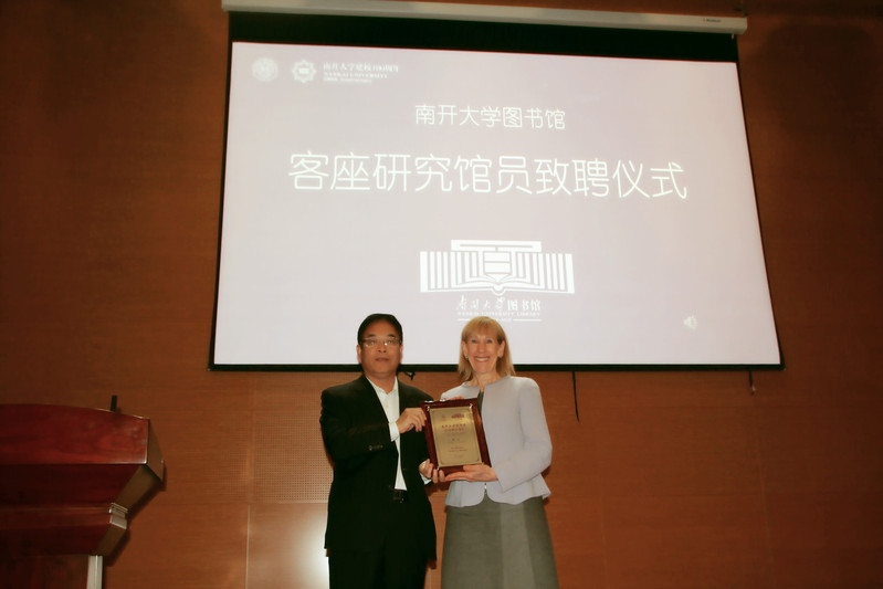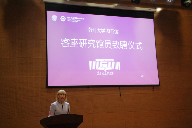 10月23日,美国乔治?华盛顿大学图书馆馆长兼学术创新部部长Geneva Henry女士受聘南开大学图书馆客座研究馆员。图书馆元青馆长为Henry馆长致送了聘书,致聘仪式由王娟萍副馆长主持。Henry馆长表达了她对南开大学百年校庆、南开大学百年馆庆的由衷祝贺,表示十分荣幸受聘南开大学图书馆客座研究馆员,今后要努力推进两馆之间的合作。