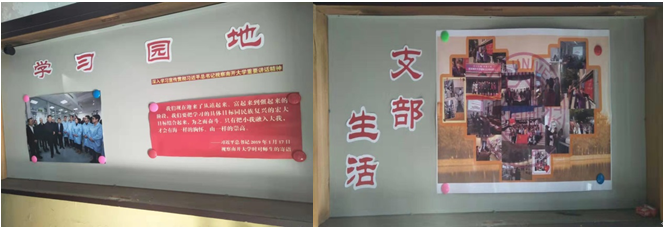 “党支部学习园地”共分为两部分进行了展示:在文中馆一楼橱窗区,展示了习近平总书记2019年1月17日视察南开大学时的图片和对南开师生的寄语——“我们现在迎来了从站起来、富起来到强起来的阶段,要把学习奋斗的具体目标同民族复兴的伟大目标结合起来,为之而奋斗。只有把小我融入大我,才会有海一样的胸怀,山一样的崇高?!?我们将牢记习近平总书记对南开的殷切期望与嘱托,为实现中华民族伟大复兴的中国梦贡献南开人的力量。
