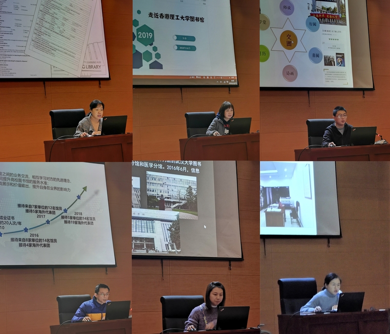 2019年,图书馆共派出3批6位馆员,分别赴香港理工大学、上海交通大学和武汉大学图书馆进行访学交流。派出馆员就所赴图书馆的馆情、业务工作特色和访问心得体会进行了分享。