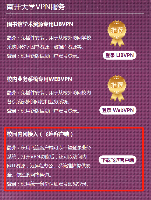南开大学VPN服务页面