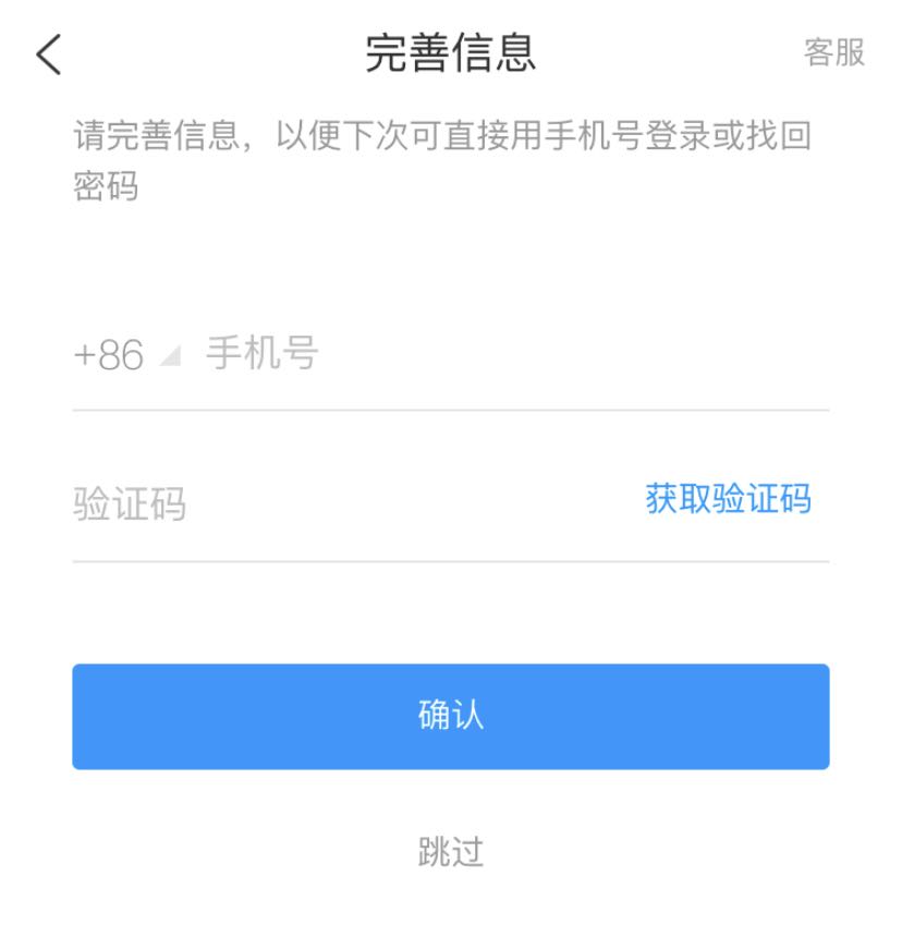 (四)输入手机号获取验证码确认,或跳过