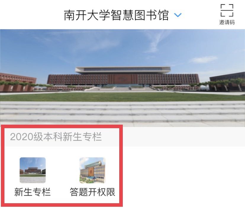 (五)填写“姓名”。并点击首页右上角“邀请码”,输入“nkdxtsg”进入南开大学智慧图书馆