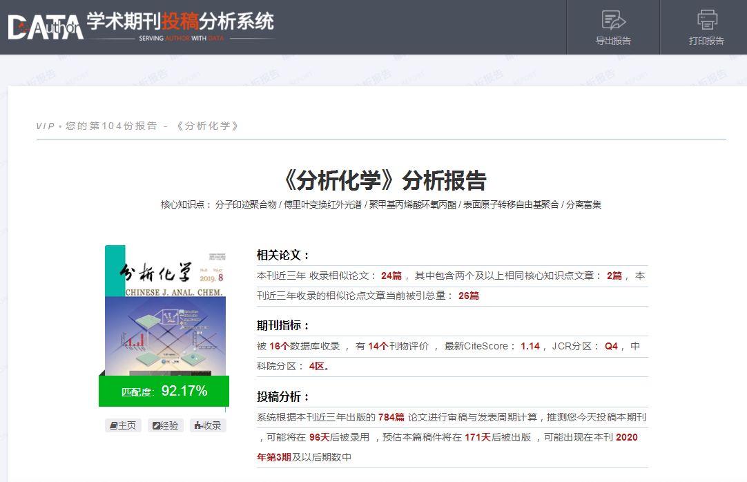 学术期刊投稿分析系统(DSA)是基于国内外常用文献数据库为基础,对每一篇论文与期刊的关系进行大数据计算,为作者实现多种期刊维度筛选和分析报告的投稿推荐。系统收录了中外文期刊数据信息4.8万余种,涵盖近乎所有期刊延伸字段信息。并整理多种期刊评价指标和数据库分类方式,供作者全面的了解期刊信息。