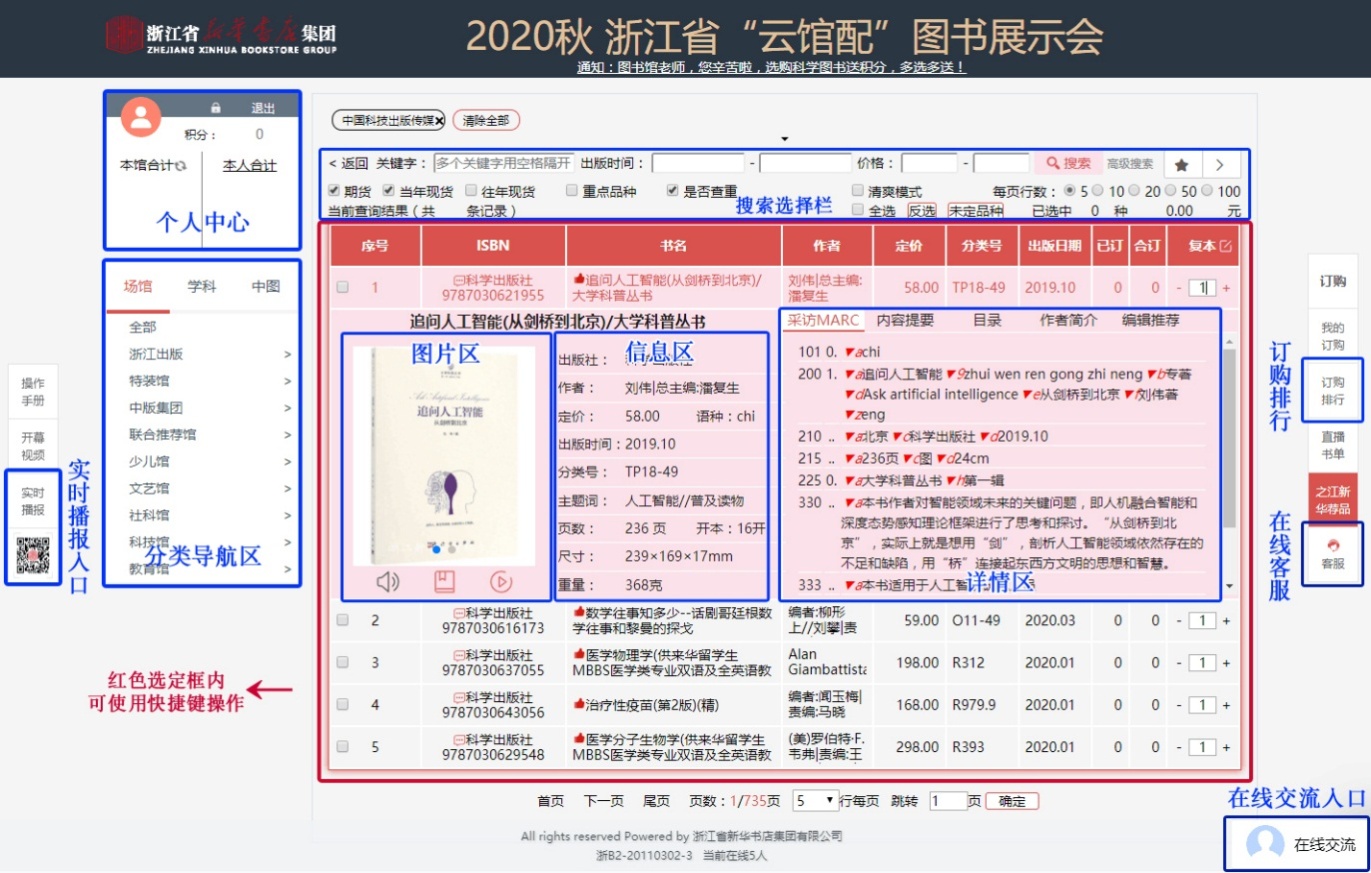 a.点击展馆参观导视图呈现的小图标或分类浏览入口,进入图书订购页面。