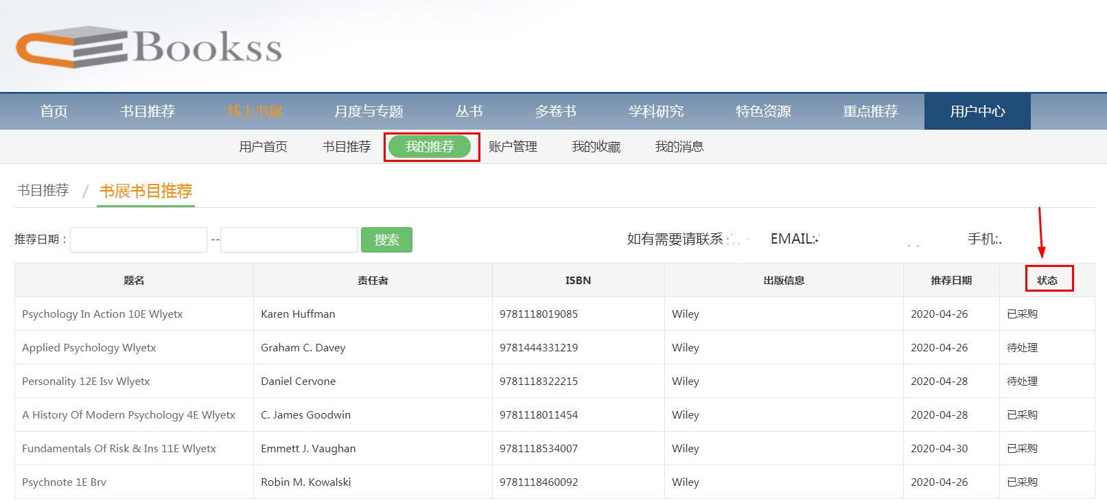 全品类新书抢先知晓,部分图书品种支持试听、试读、试看。我校读者可随时在线自主选购心仪的图书,欢迎全校师生积极参与,图书馆将根据读者推荐情况和馆藏政策酌情订购。