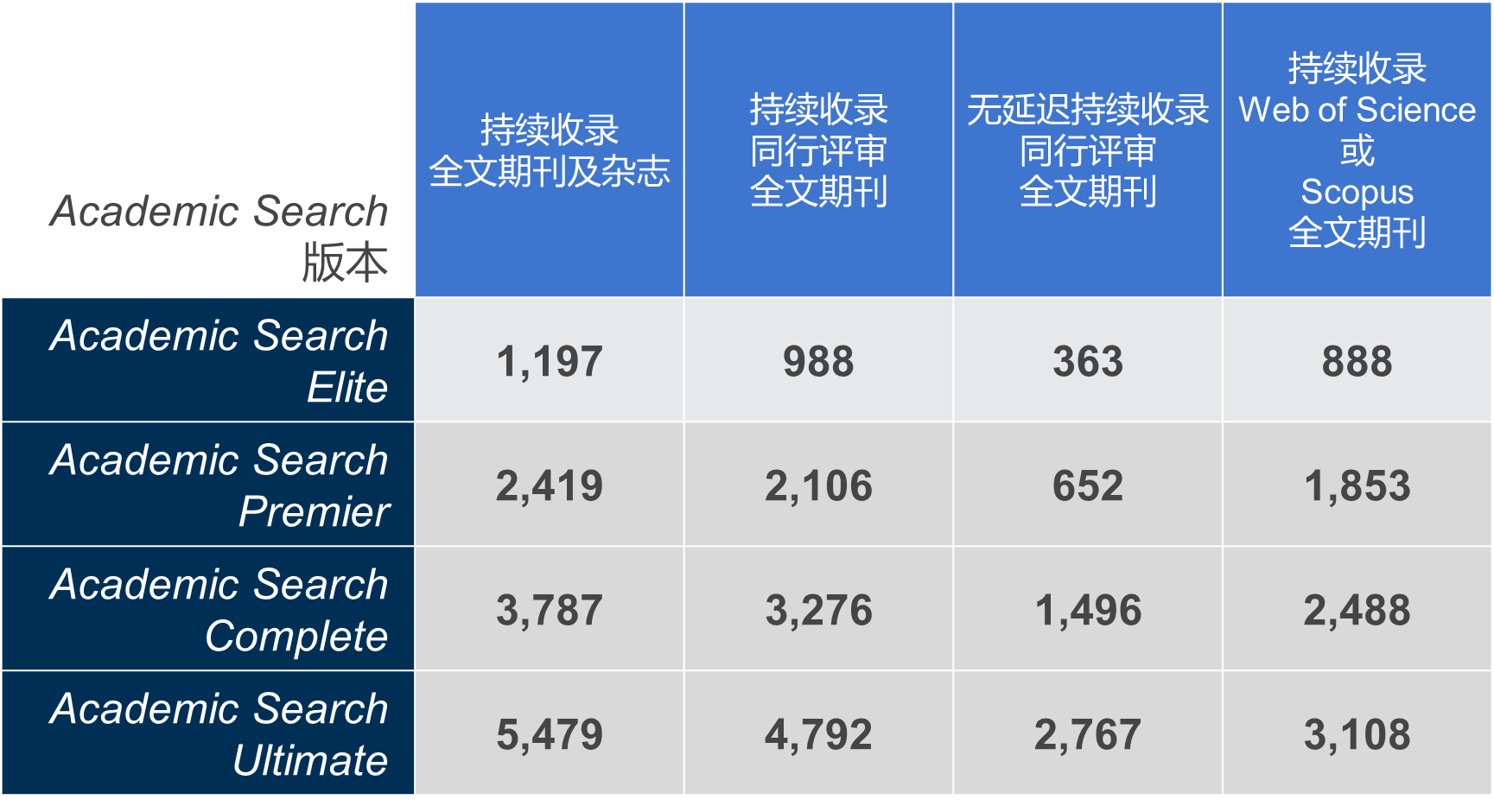 数据内容:ASU持续收录5435种全文、非开放存取期刊和杂志;4746种全文、同行评议、非开放存取期刊;无延迟持续收录2716种全文、同行评议、非开放存取期刊;3118种在科学网或Scopus上索引的全文、非开放存取期刊。