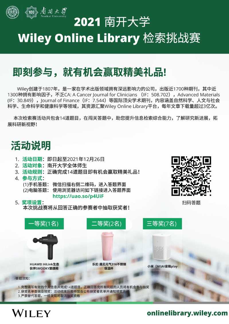 此外,Wiley已经通过与NSTL的合作,将900多种过刊资源向中国高校的读者全面开放访问。我校师生在校园网范围内均可免费访问Wiley的过刊资源。