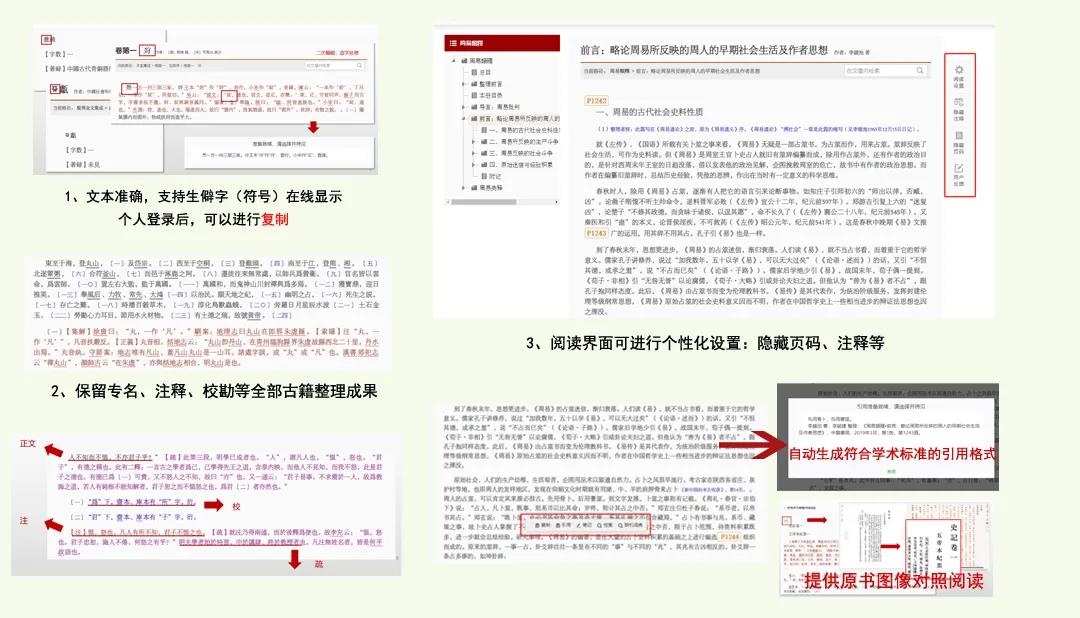 该平台的资源保留了图书完整的前言、注释、校勘等整理成果,且数据精准,并拥有合法版权,保证用户引用质量。