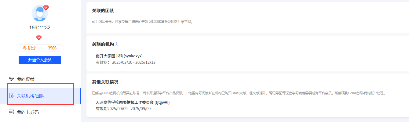 登录知网研学后,点击【右上角的头像】,进入【个人中心】,输入口令XMQDNA点击“关联”。