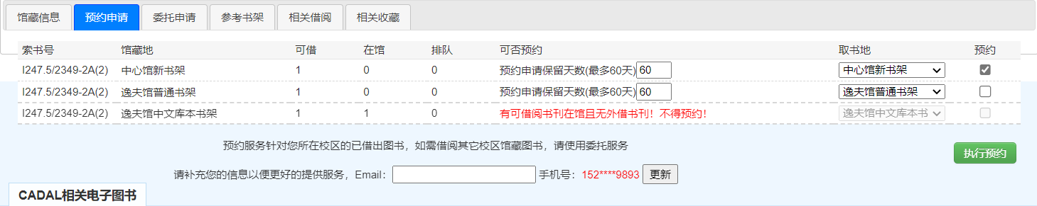 读者所需的在本校区馆藏图书已借出,读者可登录 “我的图书馆”,通过OPAC检索系统办理预约借阅申请。